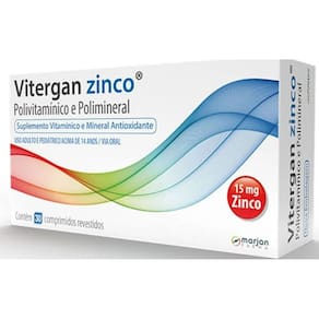 Vitergan Zinco é um suplemento vitamínico e mineral antioxidante. Vitergan zinco reúne em sua composição vitaminas e minerais com atividade antioxidante para a neutralização dos radicais livres.