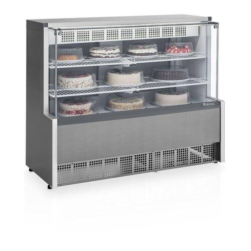 Vitrine Refrigerada Gpea140r Gelopar Aurora Confeitaria 1,40mt Tipo Inox 110v Vitrine Refrigerada Confeitaria Linha Aurora Dupla Função GPEA140R Gelopar. Vitrine Refrigerada Confeitaria Dupla Função. Conservação e Exposição de bolos, tortas, doces e confeitos. Conservação e Exposição de bebidas, frios e laticínios. Refrigeração: Estática com evaporador aletado. Temperatura: Bolos: +5C a +10C. Bebidas: 0 a +7C. Degelo: Manual. Controle de Temperatura: Termostato. Revestimento Externo: Gabinete: Monobloco em aço pré-pintado. Iluminação LED (interna), com interruptor. Porta(s) injetada(s) em PSAI. Prateleiras: 2 níveis, aramadas. Pés niveladores. Vidros temperados sujeitos a condensação da umidade do ar. Recomendável embalagem com cúpula para proteção dos bolos, pois poderá haver gotejamento da condensação da chapa do evaporador. TEMPERATURA: bolos +5C a +7C /bebidas 0C a +7C. PESO: 80,5 Kg. CONSUMO: 5,72 kWh/dia. DIMENSÕES EXTERNAS (CxAxL): 140x115x63,2cm. Equipamento certificado conforme Portaria Inmetro n 371/2009. Vitrine Refrigerada Confeitaria Linha Aurora Dupla Função GPEA140R Gelopar é na Atau. Marca - Gelopar Modelo - GPEA140R Frente - 1,40m Altura - 1,15m Profundidade - 63cm. Temperatura - bolos +5C a +7C/bebidas +1C a +7C Peso - 80,5 Kg Consumo - 5,72 kWh/dia