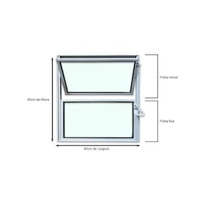 Especificações Técnicas Marca: Brecorimo Modelo: Basculante Linha Esmeralda Cor: Branco Material: Alumínio Vidro: Liso Verde 3mm Uma Seção Medidas da peça: 40 cm x 40 cm x 3 cm altura x largura x espessura
