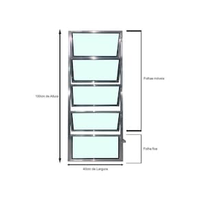 Especificações Técnicas Marca: Brecorimo Modelo: Basculante Linha Esmeralda Cor: Brilhante Material: Alumínio Vidro: Liso Verde 3mm Uma Seção Medidas da peça: 100 cm x 40 cm x 3 cm altura x largura x espessura