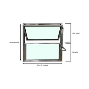 Especificações Técnicas Marca: Brecorimo Modelo: Basculante Linha Esmeralda Cor: Brilhante Material: Alumínio Vidro: Liso Verde 3mm Uma Seção Medidas da peça: 40 cm x 60 cm x 3 cm altura x largura x espessura