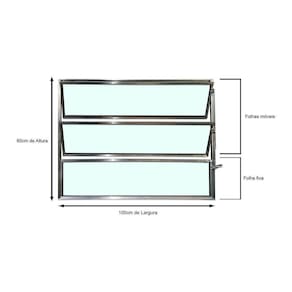 Especificações Técnicas Marca: Brecorimo Modelo: Basculante Linha Esmeralda Cor: Brilhante Material: Alumínio Vidro: Liso Verde 3mm Uma Seção Medidas da peça: 60 cm x 100 cm x 3 cm altura x largura x espessura