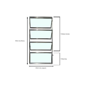 Os vitrôs basculantes são uma opção prática e versátil para quem busca uma solução eficiente em aberturas de janelas.Especificações TécnicasMarca: BrecorimoModelo: BasculanteLinha EsmeraldaCor: BrilhanteMaterial: AlumínioVidro: Liso Verde 3mmUma SeçãoMedidas da peça: 80 cm x 40 cm x 3 cm altura x largura x espessura Recomendação da instalação:- Instale com a embalagem.- Use o prumo e o nível para alinhamento.- Para limpeza use apenas água.