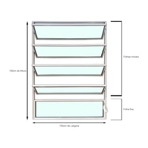 ?? CARACTERÍSTICAS Modelo: Vitro Basculante 1 Seção Linha: Esmeralda Material: Alumínio Cor: Branco Vidro: Liso 3 mm Medidas: 100 cm (A) x 100 cm (L) x 3 cm (C) Garantia: 1 ano Produto pronto para instalação