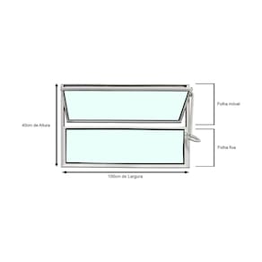 ?? CARACTERÍSTICAS Modelo: Vitro Basculante 1 Seção Linha: Esmeralda Material: Alumínio Cor: Branco Vidro: Liso 3 mm Medidas: 40 cm (A) x 100 cm (L) x 3 cm (C) Garantia: 1 ano Produto pronto para instalação