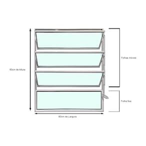 ?? CARACTERÍSTICAS Modelo: Vitro Basculante 1 Seção Linha: Esmeralda Material: Alumínio Cor: Branco Vidro: Liso 3 mm Medidas: 80 cm (A) x 80 cm (L) x 3 cm (C) Garantia: 1 ano Produto pronto para instalação