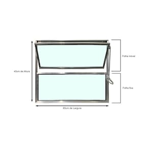 ?? CARACTERÍSTICAS Modelo: Vitro Basculante 1 Seção Linha: Esmeralda Material: Alumínio Cor: Brilhante Vidro: Liso 3 mm Medidas: 40 cm (A) x 80 cm (L) x 3 cm (C) Garantia: 1 ano Produto pronto para instalação