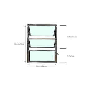 ?? CARACTERÍSTICAS Modelo: Vitro Basculante 1 Seção Linha: Esmeralda Material: Alumínio Cor: Brilhante Vidro: Liso 3 mm Medidas: 60 cm (A) x 40 cm (L) x 3 cm (C) Garantia: 1 ano Produto pronto para instalação