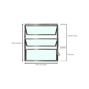 ?? CARACTERÍSTICAS Modelo: Vitro Basculante 1 Seção Linha: Esmeralda Material: Alumínio Cor: Brilhante Vidro: Liso 3 mm Medidas: 60 cm (A) x 60 cm (L) x 3 cm (C) Garantia: 1 ano Produto pronto para instalação