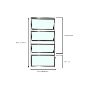 ?? CARACTERÍSTICAS Modelo: Vitro Basculante 1 Seção Linha: Esmeralda Material: Alumínio Cor: Brilhante Vidro: Liso 3 mm Medidas: 80 cm (A) x 40 cm (L) x 3 cm (C) Garantia: 1 ano Produto pronto para instalação