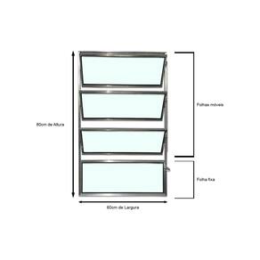 ?? CARACTERÍSTICAS Modelo: Vitro Basculante 1 Seção Linha: Esmeralda Material: Alumínio Cor: Brilhante Vidro: Liso 3 mm Medidas: 80 cm (A) x 60 cm (L) x 3 cm (C) Garantia: 1 ano Produto pronto para instalação