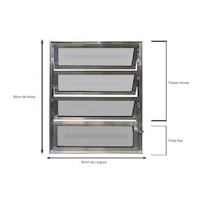 ?? CARACTERÍSTICAS Modelo: Vitro Basculante 1 Seção Linha: Jade Material: Alumínio Cor: Brilhante Vidro: Boreal 3 mm Medidas: 80 cm (A) x 80 cm (L) x 4.5 cm (C) Garantia: 1 ano Produto pronto para instalação