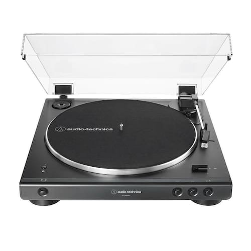 Acessórios incluídos: Capa contra poeira, feltro, prato (com correia de acionamento), adaptador de 45 RPM, cabo de áudio RCA (aprox. 1,2 m), adaptador AC (aprox. 1,5 m)