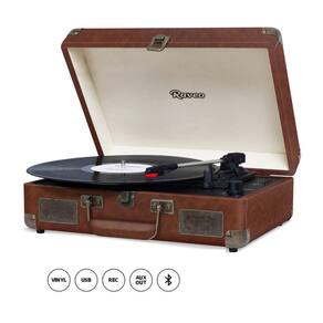 Vitrola Retrô Raveo Sonetto Vintage Chrome Brown Marrom Toca Discos Vinil USB Bluetooph Reproduz Grava Bivolt Saída Auxiliar