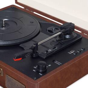 Você é apaixonado pela qualidade incomparável do vinil? Deseja reviver a era dourada da música com todo o estilo e praticidade? Então a Vitrola Raveo Sonetto é o seu próximo item essencial. Qualidade Inigualável: Experimente a sensação única de ouvir suas músicas favoritas com a clareza e autenticidade que só o vinil pode proporcionar. Com a Vitrola Raveo Sonetto, mergulhe em uma experiência sonora que transcende o tempo. Conexão Bluetooth: Desfrute da modernidade sem abrir mão da tradição! Com a conexão Bluetooth integrada, você pode transmitir suas músicas diretamente do seu dispositivo móvel para a Vitrola Raveo Sonetto, ampliando ainda mais suas opções de entretenimento. Gravação em USB: Capture momentos especiais da sua coleção de vinil com facilidade! Graças à entrada USB da Raveo Sonetto, você pode gravar suas faixas favoritas diretamente do toca-discos, garantindo que cada momento musical seja eternizado. Reviva o Encanto do Vinil com Estilo e Elegância O renascimento do vinil não é apenas uma tendência passageira, é um movimento cultural que está crescendo exponencialmente em todo o mundo. Com a Vitrola Raveo Sonetto, você pode fazer parte desse movimento, resgatando a autenticidade e o prazer de ouvir música da forma mais clássica e elegante possível. Seus Arquivos Digitais ao Alcance de um Toque Praticidade A Raveo Vintage Chrome Brow é prática para transporte, fechada vira uma maleta portátil que você pode levar em suas viagens ou na casa de amigos.