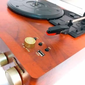 Características: Modelo: Corrente contínua Frequências de Rádio: FM Modelo: Studio Brown Modos de Gravação: Vinil para pen drive Potência RMS:20 W Tipo de Produto: Vitrola Conectividade: Bluetooth e Entrada USB Description Features: Velocidade do Toca Discos: 33 1/3, 45 e 78 Tipo de Cartucho da Vitrola: cerâmico Sistema de Movimentação do Toca-Discos: Correia Faixas de Frequência: 76 ? 108 MHz Agulha: SJN68