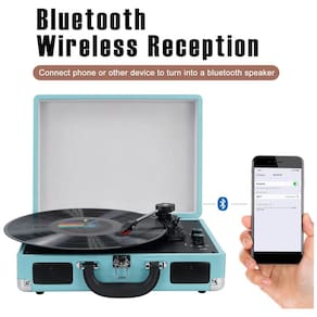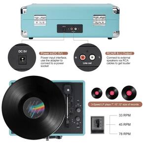 Toca discos USB Como um toca discos USB e simplesmente se conecta ao seu PC via cabo USB. Use o software incluído para gravar e converter seus registros em MP3 ou WAV. Elegante toca discos de vinil autônomo com estilo vintage. Design de pasta, mala para fácil portabilidade e aparência elegante Três velocidades Ajustável para reproduzir discos de 33 1, 3, 45 ou 78 RPM Alto falantes integrados Alto falantes estéreo dinâmicos de gama completa. Conexão phono traseira para conectar o toca discos ao seu aparelho de som doméstico Braço de tom dinâmico e balanceado com controle de amortecimento suave Marca: Não Informado