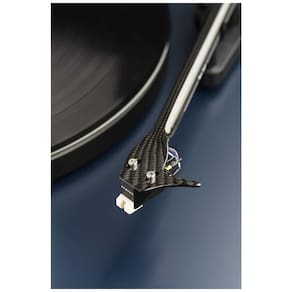 Braço de fibra de carbono de , cabeçote integrado Seleção eletrônica de velocidade para 33 e 45 RPM capacidade de 78 Rolamentos de braço de safira de precisão de baixo atrito Cartucho fonográfico Sumiko Rainier, montado na fábrica e alinhado com precisão Prato pesado de aço estampado de 1,7 kg com amortecimento em TPE