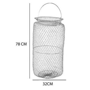 O cesto de pesca é o equipamento que não pode faltar na sua pescaria, sua estrutura de metal o torna muito mais resistente e durável, e além do mais ele conta com diversas utilidades que o tornam muito mais prático, ele possui uma alça na qual você pode deixar o cesto preso dentro da água para conservar os peixes ou então carregar o mesmo, sua estrutura é desenvolvida de modo que é possível fechar o cesto por completo, deixando-o mais prático na hora de transportar, nas suas pescarias você não vai mais passar sufoco, pois o cesto de pesca conta com uma porta com fechamento por mola que só abre para dentro ou seja, seus peixes não vão nunca mais fugir. Adquira agora mesmo o cesto de pesca e tenha muito mais praticidade e segurança nas suas pescarias.