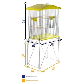 Ficha técnica: saiba mais sobre o produto O viveiro pequeno é produto ideal para acondicionar seus pássaros. Confira os detalhes: Medidas 46cm de altura viveiro 23cm de largura viveiro 38cm de comprimento viveiro 36cm de altura do pé suporte 26cm de largura do pé suporte 41cm de comprimento do pé suporte 1,5cm de distância entre as malhas grades Material Arame de alto padrão com tratamento de zincagem que reduz a incidência de ferrugem. Ean: 7897164902331
