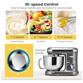 VIVOHOME 6 litros Electric Stand Mixer 650W Motor 6 speed Control 6 Quart Bowl 3 multiuso acessórios LED indicador . A batedeira multifuncional VIVOHOME é um subchefe ideal para sua cozinha. Elegantemente desenhado com uma cabeça de inclinação travável e controle de 6 velocidades com uma função de pulso, é conveniente e fácil de operar e ajuda em todas as suas tarefas e preparação de alimentos. Com uma ótima aparência em qualquer balcão, este é um excelente ajudante na cozinha. Também é um ótimo presente O motor de 650 W de alto desempenho termina de amassar e misturar rápida e completamente. Controle prático de 6 velocidades com função de pulso para todas as suas tarefas alimentares ou necessidades de preparação de receitas. A tigela totalmente em aço inoxidável com polimento fino está sob o padrão de qualidade alimentar, durável e segura, garante a saúde de você e sua família. 6QT de grande capacidade atende a toda sua utilização e fácil de fazer bolos, pães, biscoitos, saladas e etc. Acessórios de ferramentas diferentes combinam com vários tipos de cozinha, como fazer mooncakes, biscoitos, pastelaria, muffins, waffle, etc. O design da cabeça inclinada torna a tigela e os acessórios fáceis de instalar e desmontar. Torne o cozimento mais fácil enquanto fornece pratos deliciosos para a família ou convidados em minutos. Um ótimo ajudante de cozinha para você Dissipação rápida de calor. Possui 2 saídas de ventilação na parte traseira e inferior do misturador, melhorando a capacidade de resfriamento e aumentando a vida útil da máquina. Resistente e solidamente construído para uso a longo prazo. Mecanismo de inclinação conveniente A cabeça inclina se para trás para fornecer espaço de trabalho e fácil manobra, travando com segurança no lugar durante a operação. A base estável evita o deslizamento e reduz o ruído para um trabalho suave e uma área de cozimento silenciosa. Trilha de mistura planetária. Nosso motor de 650 W de alto desempenho pode bater, amassar ou misturar ingredientes de forma completa e eficaz. Projetada para simular movimentos culinários perfeitos, esta ferramenta pode ser uma ajuda bem vinda em uma cozinha movimentada. Ideal para fazer massa de pizza, pão, cupcakes, bolos, croissants, biscoitos, panquecas, pretzels e merengues