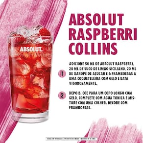 A Vodka Absolut Raspberri e importada da Suécia, aromatizada com framboesa, sua alta qualidade se deve aos ingredientes de alta qualidade e do criterioso processo de destilacao continua.