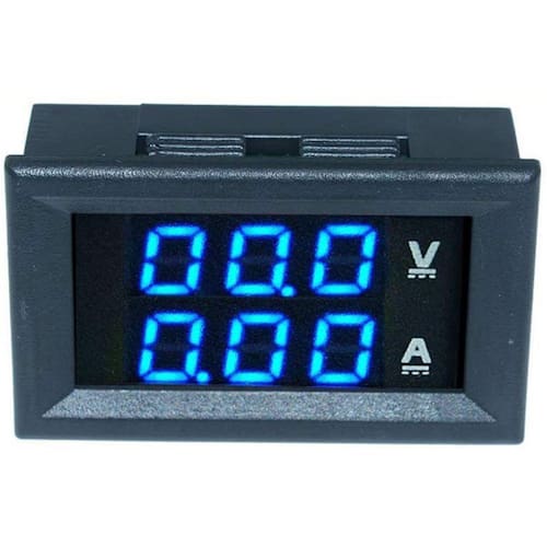 - Cor do display: azul (voltagem), vermelho (amperagem)
