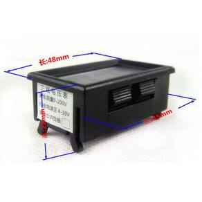 Especificacoes: - Dimensoes: 48 x 29 x 22 mm - Tamanho do corte: 46 x 27 - Faixa de medicao: DC de 4V a 30V - Faixa de alimentacao: DC de 4V a 30V - Tensao maxima: 30 Vdc - Comprimento dos fios :18 cm