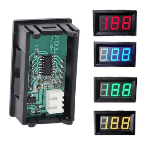 Especificacoes: - Dimensoes: 48 x 29 x 22 mm - Tamanho do corte: 46 x 27 - Faixa de medicao: DC de 0V a 30V - Faixa de alimentacao: DC de 5V a 30V - Tensao maxima: 30 Vdc - Comprimento dos fios :18 cm