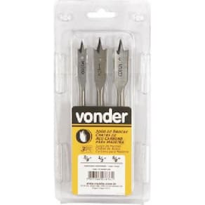 Vonder - Broca Chata 3/8 - 1/2 - 5/8 Jogo Em Aço Carbono para Madeira Broca Chata 3/8 - 1/2 - 5/8 Jogo em aço carbono para madeira - VONDER Jogo de brocas chatas com 3 peças, de 3/8 - ½" - 5/8, VONDER