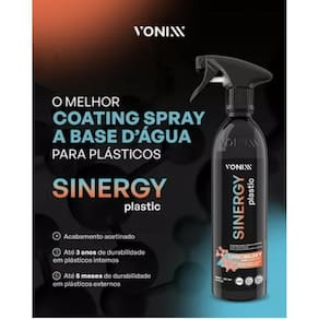 O Vonixx Sinergy Plastic é um revestimento em spray especialmente desenvolvido para proteger plásticos automotivos. Com uma fórmula à base de água, contendo carbono e silício, esse produto oferece uma proteção duradoura de até três anos para plásticos internos e cinco meses para plásticos externos do veículo.