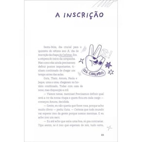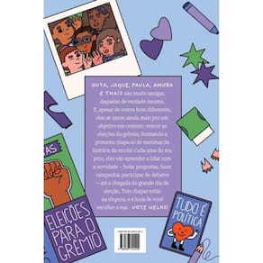 Determinadas, motivadas e não tão confiantes, Jaque, Amora, Thaís, Paula e Guta acabaram de formar a primeira chapa só de garotas da história de sua escola. As eleições do grêmio já vão começar, e prepare-se: a Escola Cora Coralina nunca mais será como antes! Cinco amigas do sétimo ano resolvem se candidatar às eleições do grêmio estudantil. Cada uma a seu modo vai dar tudo de si pela campanha: Amora, cheia de iniciativa, embora ainda tímida por ser aluna nova na escola, é quem propõe que o quinteto entre na disputa; Paula, capitã do time de futebol feminino, tem muita experiência em competições e liderança de equipe; Thaís adora ler e estudar, é quem sugere ótimas estratégias de campanha; Guta curte muito desenhar e se encarrega da identidade visual da chapa; e Jaque, sempre conectada aos astros e aos mantras, canaliza só energias positivas na empreitada. Por fim, resta a nós, leitores, acompanharmos de perto tudo o que vai acontecer, desde o momento em que elas decidem se candidatar até o dia do anúncio do resultado. Os anseios, inseguranças, conflitos e paixões de Guta, Jaque, Paula, Amora e Thaís serão também nossos. De um jeito descontraído e envolvente, o livro aborda questões como feminismo, ética, cidadania e política, mostrando que esses são assuntos que podem e devem ser levantados desde cedo. Indicado para leitores a partir de 8 anos.