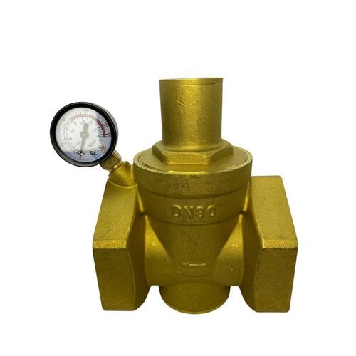 Vrp tk- 905 valvula redutora pressao latao com manometro dn 3 pol Válvula redutora para agua Regulagem de 1 a 16 bar 250 psi Corpo em latão hpb57-3 Extremidades rosca gás bsp ff Saída para manômetro flp 1/4 manômetro incluído Compatível com água Temperatura de trabalho de -10ºc a 110ºc. Pressão máxima de trabalho 16 bar pn16 . A válvula redutora de latão usa as peças de abertura e fechamento da válvula para ajustar o fluxo do meio, reduzir a pressão do meio e, ao mesmo tempo, ajustar a abertura da válvula pela pressão atrás da válvula, de modo que a pressão final seja mantida dentro de uma determinada faixa. no caso de alterações constantes na pressão de entrada, a pressão de saída é mantida dentro da faixa definida para proteger os aparelhos residenciais e de produção subsequentes. Função - regulação , descompressão Aplicação - a válvula redutora só pode ser utilizada para a descompressão de gás limpo ou água como ar, vapor, água, que não contenha impurezas particuladas. se necessário, um filtro pode ser instalado antes da válvula redutora . Marca: Não Informado