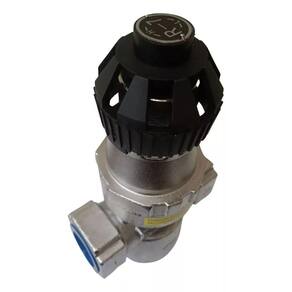 VRP Válvula Redutora Pressão Vapor 1/2 BSPT Inox 304 Válvula redução para rede de Vapor com rosca interna de aço inoxidável x000d A válvula redutora de vapor de pistão de rosca interna tipo R7 H/F é uma válvula redutora de pistão piloto. A pressão de saída é ajustada ajustando a pressão da mola, o diafragma é para detectar a mudança da pressão de saída e a válvula piloto é aberta e fechada para acionar o pistão para ajustar o tamanho da área de fluxo da parte de estrangulamento do válvula principal, de modo a realizar a função de descompressão e regulação de tensão. x000d x000d Corpo e Tampa em Aço Inox 304 x000d Interno fole em inox x000d x000d Pressão máxima 16 bar x000d Pressão de ajuste 0,5 a 10 bar x000d Temperatura maxima 250C x000d Rosca BSPT 1/2 femea x000d Regulagem na canopla Marca: Não Informado