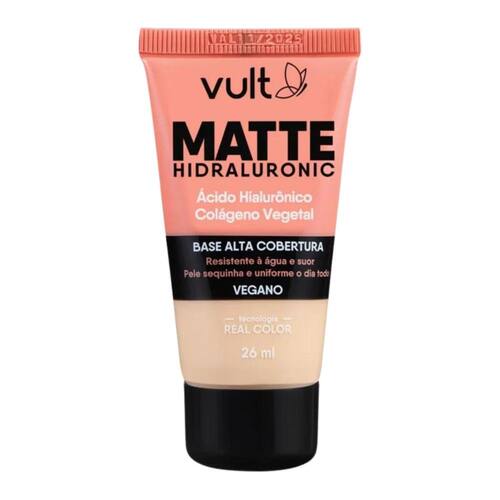 Vult Base Alta Cobertura Vegano Matte Hidraluronic V100 26ml A Base Alta Cobertura Vegano Matte Hidraluronic V100 da Vult é ideal para quem busca uma pele uniforme e sequinha ao longo do dia. Com uma fórmula enriquecida com Ácido Hialurônico e Colágeno Vegetal, essa base oferece alta cobertura e um acabamento fosco impecável, ao mesmo tempo em que hidrata e cuida da pele. O resultado é uma pele bonita e aveludada, sem brilho excessivo. Indicada para quem prefere produtos veganos, a Base Matte Hidraluronic proporciona uma aparência natural e duradoura, deixando a pele com um acabamento suave e uniforme o dia todo. A combinação de Ácido Hialurônico e Colágeno Vegetal também ajuda a melhorar a elasticidade da pele, proporcionando um cuidado extra enquanto disfarça imperfeições. Modo de uso: Aplique a base no rosto e pescoço com a ponta dos dedos ou utilize um pincel para um efeito mais intenso e uma cobertura ainda mais precisa. Marca: Não Informado Ean: 7899852022536