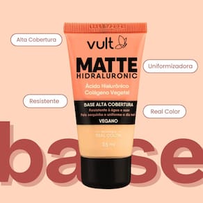 Vult Base Alta Cobertura Vegano Matte Hidraluronic V150 26ml A Base Alta Cobertura Vegano Matte Hidraluronic V150 da Vult é ideal para quem busca uma pele uniforme e sequinha ao longo do dia. Com uma fórmula enriquecida com Ácido Hialurônico e Colágeno Vegetal, essa base oferece alta cobertura e um acabamento fosco impecável, ao mesmo tempo em que hidrata e cuida da pele. O resultado é uma pele bonita e aveludada, sem brilho excessivo. Indicada para quem prefere produtos veganos, a Base Matte Hidraluronic proporciona uma aparência natural e duradoura, deixando a pele com um acabamento suave e uniforme o dia todo. A combinação de Ácido Hialurônico e Colágeno Vegetal também ajuda a melhorar a elasticidade da pele, proporcionando um cuidado extra enquanto disfarça imperfeições. Modo de uso: Aplique a base no rosto e pescoço com a ponta dos dedos ou utilize um pincel para um efeito mais intenso e uma cobertura ainda mais precisa. Marca: Não Informado