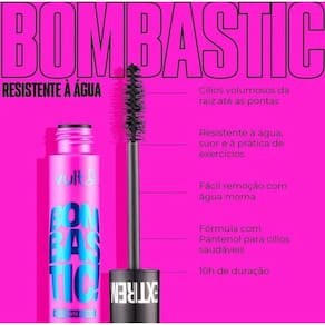 Vult Máscara de Cílios Extreme Bombastic 10g A Vult Extreme Bombastic é uma máscara para cílios de alta performance, com fórmula resistente à água, suor e exercícios. Garantindo volume intenso, curvatura marcante e alongamento uniforme, oferece um visual dramático com duração de até 10 horas. Características: Efeito bombástico: promove cílios volumosos da raiz às pontas desde a primeira aplicação Fórmula resistente à água, suor e atividades físicas, com remoção facilitada em água morna Ativos nutritivos: contém pantenol, vitaminaE e óleo de coco, que fortalecem e condicionam os fios Pigmentação intensa: preto profundo com durabilidade de até 10 horas Cruelty-free: não é testada em animais Modo de Uso: Aplique o produto da raiz às pontas utilizando o movimento em zigue-zague para separar os fios. Construa camadas para intensificar o volume e alongamento. Remova com água morna e demaquilante suave. Cuidados: Uso externo; evite contato com olhos. Interrompa o uso se surgirem irritações. Trocar a máscara a cada 3 a 6 meses para evitar contaminações. Conservação em local fresco, longe de calor e luz direta. Marca: Não Informado