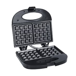 Máquina de Waffle compacta com revestimento antiaderente, duplo aquecimento, luz indicadora de funcionamento e aquecimento, alça com trava, porta-fios, design em inox e corpo em baquelite.Porta-fio