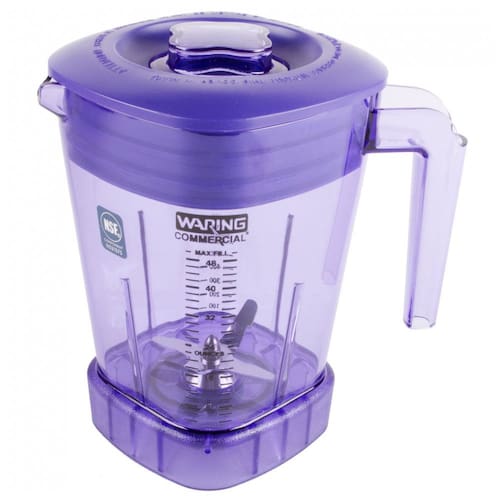O copo de liquidificador Waring The Raptor, com capacidade para 1,42 litros (48 oz), é especialmente projetado para as séries de liquidificadores comerciais Waring MX. Fabricado em copoliéster durável e praticamente inquebrável, este copo suporta o uso intenso e rigoroso de cozinhas industriais e bares. Seu design empilhável permite armazenar mais copos ocupando menos espaço, garantindo fácil acesso e organização. A cor roxa vibrante não só confere um visual moderno, mas também facilita a criação de sistemas de codificação por cores, prevenindo a contaminação cruzada na preparação de alimentos. O copo acompanha tampa com tampão central removível, ideal para adicionar ingredientes sem interromper o processo de mixagem. Com lâmina altamente resistente acoplada, é perfeito para preparar uma ampla variedade de receitas, incluindo smoothies, bebidas congeladas, pastas espessas, sobremesas e molhos. O bico vertedor com design anti-gotejamento assegura um serviço limpo e sem desperdícios, evitando respingos indesejados no balcão ou no piso da cozinha. Preparado para uso imediato, este copo é a escolha ideal para otimizar a produção e a higienização em ambientes comerciais.