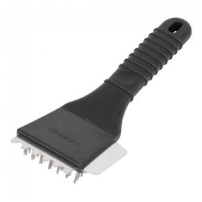A construção em aço inoxidável confere durabilidade e resistência, enquanto os cabos resistentes ao calor oferecem segurança no manuseio, mesmo nas temperaturas mais elevadas. Para facilitar a limpeza, o equipamento possui pés ajustáveis e uma bandeja coletora removível para o escoamento de gordura. Ainda acompanha uma escova pesada para grelha Waring CAC105, que ajuda a manter as placas limpas e em perfeito estado.