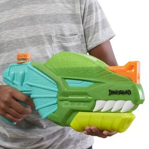 Jateador de água NERF Super Soaker DinoSquad, Pump-Action para jogos de verão ao ar livre, para crianças, adolescentes e adultos - NERF DINOSQUAD DINO-SOAK WATER BLASTER: libera um jato de água da boca do dinossauro. Saia e mire em seus alvos para mergulhar em ação de dinossauro explosivo - DESIGN INCRÍVEL DE DINOSSAURO: este lançador de água Nerf Super Soaker DinoSquad captura a aparência de um dinossauro Dilophosaurus para jogos selvagens ao ar livre e se divertir no verão - FÁCIL DE ENCHER, FÁCIL DE DISPARAR: abra a tampa e encha o tanque com água, feche a tampa e continue bombeando a alça para trás e avance para pulverizar um dilúvio de água dinotástico - Mergulhe na aventura com os lançadores Nerf DinoSquad Imagine um mundo onde você e os dinossauros possam combinar suas habilidades e seus poderes. Agora você pode, ao se juntar a dinossauros lendários como membro da elite DinoSquad! Aproveite a força extraordinária dos maiores dinossauros de todos e mergulhe em aventuras incríveis. Prepare-se para a ação com os blasters Nerf DinoSquad que apresentam detalhes inspirados em dinossauros. (Cada blaster é vendido separadamente.)