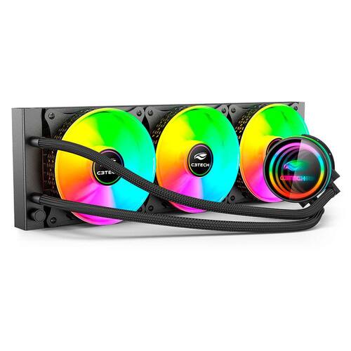 Um caminho dividido pelo radiador auxilia na dissipação do calor rapidamente, o líquido refrigerado é então bombeado de volta para o circuito.