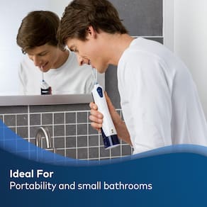 - Inclui: Design leve sem fio, reservatório de 142 g para 30 segundos de tempo de fio dental, 2 dicas exclusivas; cabo de carregamento USB-A (bloco de parede não incluído)