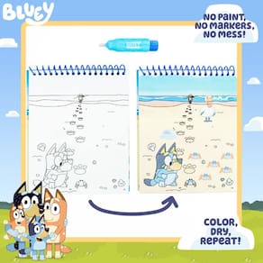 Horizon Group USA Bluey Aqua Art - Páginas de atividades reutilizáveis para revelar água com caneta d'água para desenhar e colorir sem bagunça - BASTA USAR ÁGUA: este bloco de atividades revelador de água apresenta 4 folhas de arte aquática e 4 folhas de histórias, dando um toque incrível de azul aos livros de colorir tradicionais — sem tintas, sem marcadores, sem bagunça! - REUTILIZÁVEL: Quando a caneta ficar sem água e as cores desaparecerem, basta reabastecer e reutilizá-la para trazê-la de volta à vida! - REVELE SURPRESAS: encha a caneta de pincel fornecida com água para colorir nas páginas para revelar as cores vibrantes por baixo com todos os tipos de surpresas escondidas! - O kit inclui: 1 almofada reveladora de água em espiral (6 polegadas x 7,5 polegadas, 4 folhas), 1 caneta Water Brush