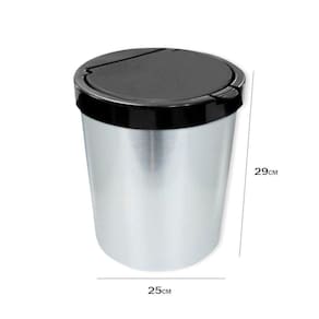 Lixeira Redonda 10 litros com tampa Click Label A lixeira de 10 litros com tampa Click Label pode ser utilizada em qualquer ambiente, seja em casa ou no trabalho. Produto em plástico resistente, revestido com adesivo Prata metalizado, imita Inox. Fácil de limpar, não perde o brilho ao higienizar. A tampa é preta assim como o interior da lixeira. A tampa tem sistema de abertura tipo Click Label, basta apertar a parte indicada com Push e acionar o levantamento da tampa. Para fechar é só abaixar até o clique de travamento. ESPECIFICAÇÕES:- Material: Plástico- Dimensões: 29cm altura x 25cm diâmetro- Peso: 420g (aproximadamente) - Cor: Prata, tipo Inox Contém: - 01 Lixeira Redonda 10 Litros com tampa Click Label na cor Prata
