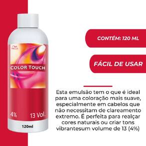 A Emulsão Reveladora 13 Volumes Wella Professionals Color Touch 4% ajuda os pigmentos a penetrarem nos fios e atribuírem cor suave luminosa e duradoura. Ideal para transformar os fios com nuances cheias de cor e brilho.
