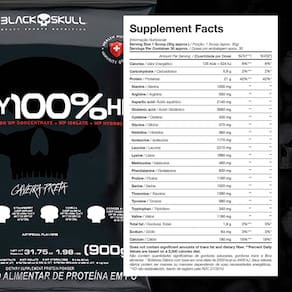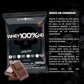 O Whey 100% HD Blackskull USA™ é mais um mega suplemento da linha Caveira Preta Series. Composto por três tipos de Whey Protein (concentrado, isolado e hidrolisado), é uma ótima opção para auxiliar no desenvolvimento muscular. Sua composição conta também com a adição de BCAA (leucina, isoleucina, valina) que são, aminoácidos de cadeia ramificada e contribuem para uma melhor recuperação pós-treino. O Whey Protein é uma proteína do soro do leite, sendo um dos suplementos mais consumidos do mundo atualmente por diversas áreas esportivas e clínicas; garante proteínas de alto valor biológico auxiliando no desenvolvimento e recuperação das fibras musculares tanto em atletas quanto em de praticantes de atividades físicas em geral, até mesmo em pacientes que necessitam de uma dieta enteral.