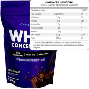 Sabor de Chocolate: Whey Protein Concentrado, cacau em pó, aroma artificial idêntico ao natural de chocolate e sucralose. Não contém glutén. Alérgicos: Contém derivado do leite.