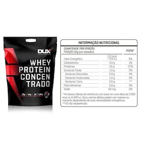 Whey protein concentrado - dux nutrition lab: o whey protein concentrado dux® é composto por proteínas de alto valor biológico e rápida absorção, além de gorduras essenciais, carboidratos e uma ampla gama de aminoácidos, fundamentais para garantir a síntese muscular acelerada após a prática de esportes. É ideal para ser consumido antes e depois de treinos, mas também pode fazer parte do café da manhã ou servir como um lanche entre as refeições, e em outros momentos conforme a orientação do seu nutricionista.