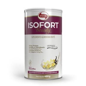 O ISOFORT® BEAUTY é um suplemento alimentar 2 em 1, uma união do Whey Protein com colágeno Verisol® composto por proteínas de alto valor biológico (cada porção oferece 21 gramas de proteína) aminoácidos e Peptídeos Bioativos de Colágeno - Verisol® que auxiliam na manutenção e saúde da pele, uma ótima opção para complementar as necessidades proteicas diárias de praticantes de atividades físicas, pois auxilia no ganho e manutenção dos músculos e na recuperação pós-treino, e para os idosos também é interessante, ajuda a prevenir a Sarcopenia. Por ser Isolado e Hidrolisado, contém proteínas de alta digestibilidade e absorção, podendo ser consumido por pessoas com problemas de digestão e intolerância a lactose, adoçado com estévia e taumatina, ideal para pessoas com diabete e ainda é fonte de Niacina, Vitamina C e Cálcio.